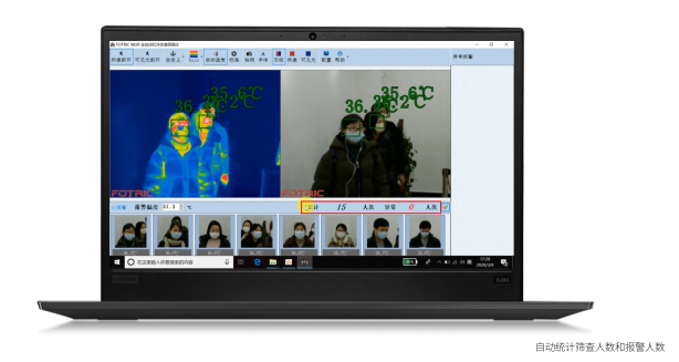 Fotric 692全自動紅外體溫篩查儀標配WLIR體溫篩查專用軟件,WLIR內(nèi)置人數(shù)統(tǒng)計和預(yù)覽功能,自動統(tǒng)計已篩查人員數(shù)量和篩查過程中報警的疑似發(fā)燒人員數(shù)量,實現(xiàn)疫情防控數(shù)據(jù)化。