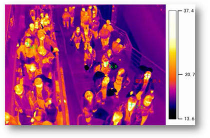 紅外熱成像測(cè)溫儀在人流量大、密集型區(qū)域,如學(xué)校、商場(chǎng)、銀行、證券交易所、影院、集市等公共場(chǎng)所;采用篩查型測(cè)溫方式,快速實(shí)現(xiàn)對(duì)發(fā)熱人員篩查,避免手工篩查造成的人員擁擠和聚集。在接近人流通過的出入口區(qū)域,設(shè)置雙光譜測(cè)溫?cái)z像機(jī),鏡頭對(duì)準(zhǔn)出入通道,測(cè)溫?cái)z像機(jī)設(shè)置一個(gè)接近發(fā)熱(譬如:37.3℃)的報(bào)警閥值,當(dāng)人流中有達(dá)到或超過這個(gè)閥值,后端平臺(tái)報(bào)警提醒工作人員,可以對(duì)發(fā)熱可疑人員進(jìn)行二次測(cè)溫,既能快速篩查,也可避免工作人員一對(duì)一近距離接觸式測(cè)溫工作,形成交叉感染的風(fēng)險(xiǎn)。